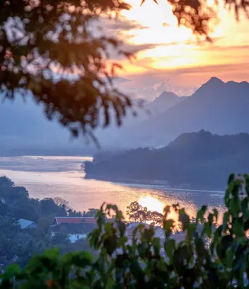 In the late afternoon, climb Mount Phousi, where a sacred gilded stupa stands at the summit. From here you can enjoy panoramic views over the city and the Mekong River, especially beautiful at sunset.
